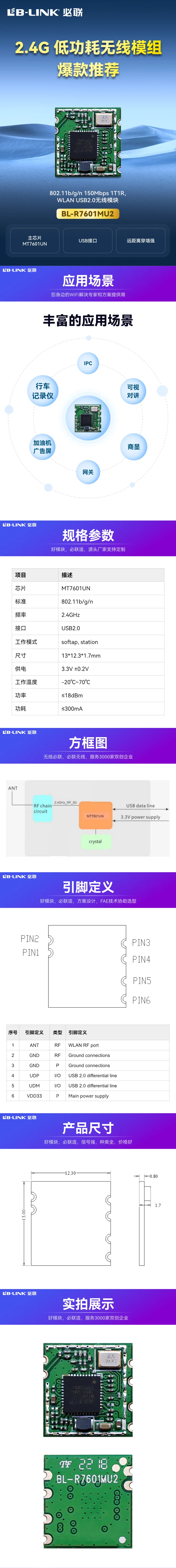 1T1R 802.11b/g/n WiFi模组