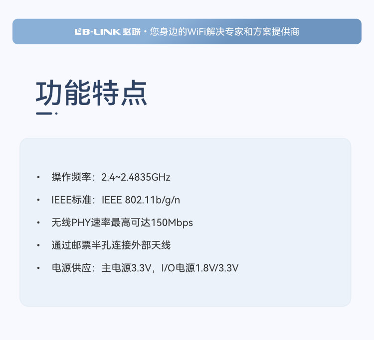 1T1R 802.11b/g/n WiFi+B4.1模组
