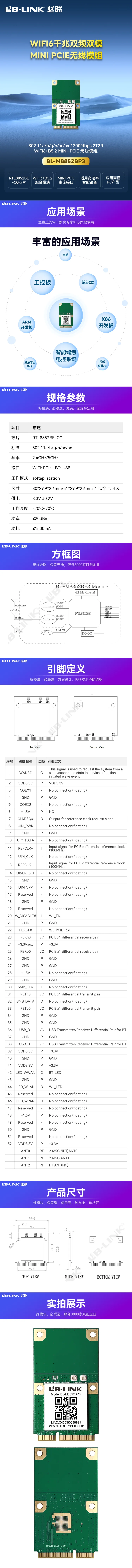RTL8852BE-CG MINI-PCIE 模组